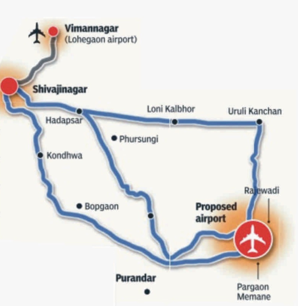 - A new Greenfield International Airport has been proposed near Purandar, Pune.